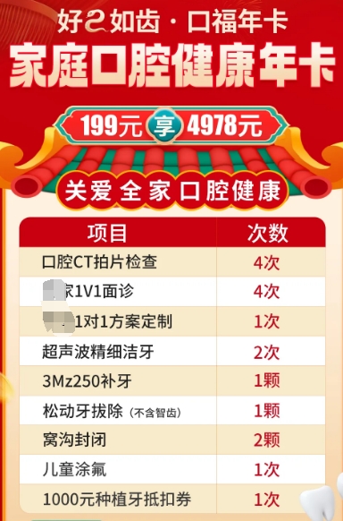 家庭口腔健康年卡199元享4978元