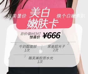 集美們~在高溫、紫外線、空調(diào)房等多方輪流“攻擊”下你的皮膚還好嘛?想要皮膚舒舒服服,美美地度過這個(gè)炎炎夏日,趕緊將這幾張醫(yī)美靚卡收入囊中,想變白但又不想錢包大出血?這張美白嫩膚「羊毛卡」給我沖就完事兒了