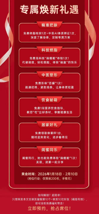 尊享6大福利,助您科學(xué)管理體重,重塑曼妙身姿,自信迎接新年!