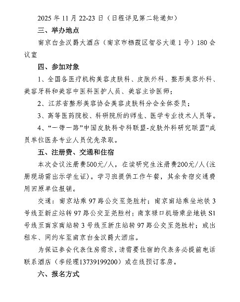 皮膚外科與美容新技術新進展學習班的第一輪通知